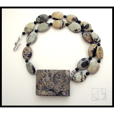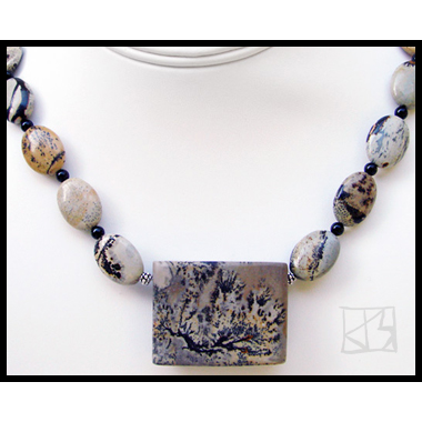 Name: manzanita landscape SALEMaterialsFocal: AAA arizona paintbrush ja Size: Beads: AAA arizona paintbrush jasper black onyx spacers bali sterling silver (.992) Clasp: bali sterling j-hook $125 | ||||||