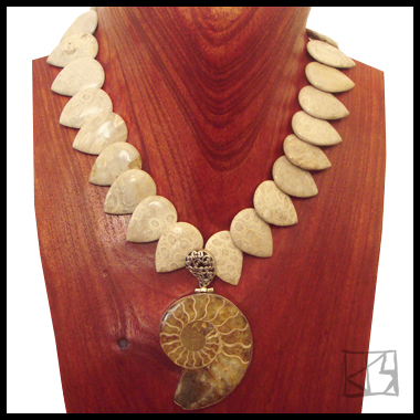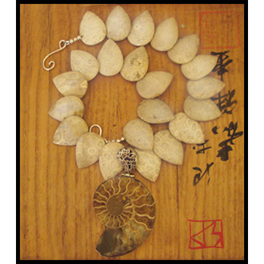 Name: unearthedMaterialsPendant: moroccan ammonite fossil in silver Size: Beads: fossil coral petal beads sterling silver Clasp: sterling j-hook Length: 18" (+ pendant $195 | ||||||