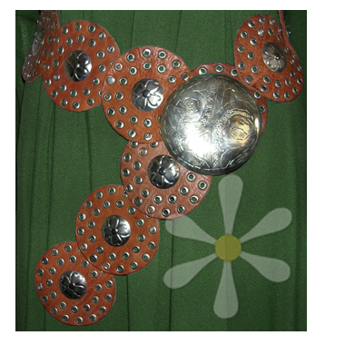 The perfect accessory for any ethnic wardrobe! It's genuine Moroccan leather, famous the world over for centuries. Successive discs are centered with a floral-embossed silver disc and two rows of open studwork. The gorgeous etched buckle anchors the fit, whether you wear it low on the hip or as a cinch at your natural waistline. Gorgeous!...show more