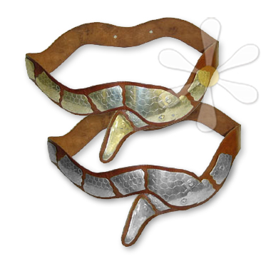This beauty sssslitherssss around your waist in waves of snaky goodness like a cobra! The hand-etched brass plates lead toward the 'head', which anchors the fit, whether you wear it low on the hip or as a cinch at your natural waistline. Gorgeous! Handcrafted in Morocco from natural tanned leather.