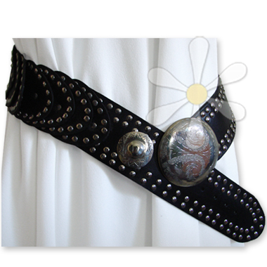 This substantial beauty is a favorite for so many reasons! It features an offset stack of ovoid pieces detailed with metal studs and anchored by an artistically etched metal disc that echoes the disc buckle. The gorgeous buckle anchors the fit, whether you wear it low on the hip or as a cinch at your natural waistline. Gorgeous!
