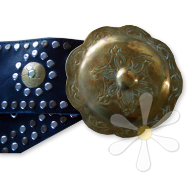 The ORA is perfect for those wanting the ethnic look of a wide belt with a bit more sophistication. It's a WOW punctuation even as it is understated. The discs and studs alternate nickel and brass, and the gorgeous scalloped buckle anchors the fit, whether you wear it low on the hip or as a cinch at your natural waistline. No Dairi, Laise...show more
