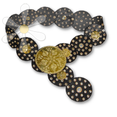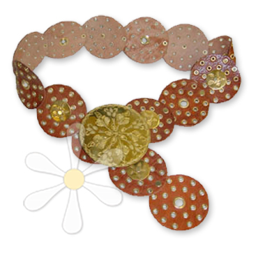 This is THE authentic Berber belt worn by men and women from the Mediterranean coast to the Sahara... fantastic for any ethnic wardrobe! It's genuine Moroccan leather, famous the world over for centuries. Successive discs are alternately centered with embossed discs and tons of open studwork. The gorgeous etched buckle -- larger and flatt...show more