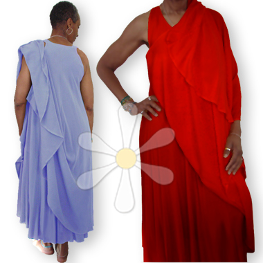 And the details are fantastic: this style, the SAFI MAGIC DRESS, has 12"-deep side pockets, MILES of flowy fabric, fine trapunto detailing... and the whole thing drapes and flutters like a gypsy dream on so many shapes and sizes! (If you need a more generous cut, see our SAFI-PLUS.)