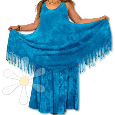 And the details are fantastic: this style, the NADOR MAGIC DRESS, has 12"-deep side pockets, MILES of flowy fabric, 7" hand twisted and knotted fringe... and the whole thing drapes and flutters like a gypsy dream on so many shapes and sizes! (If you need a more generous cut, see our NADOR-PLUS.)