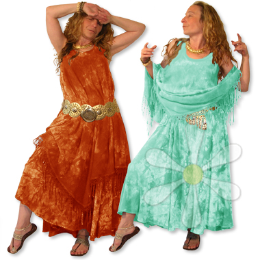 And the details are fantastic: this style, the NADOR MAGIC DRESS, has 12"-deep side pockets, MILES of flowy fabric, 7" hand twisted and knotted fringe... and the whole thing drapes and flutters ...show more This gorgeous two-layered dress is in true ethnic style, evoking traditional North African, Middle East, and Mediterranean garments.