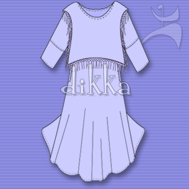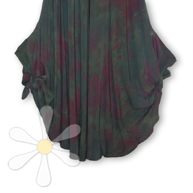 This dramatic two-layered dress is in authentic ethnic style, reminiscent of traditional nomadic garments. Not technically a Magic Dress, it still has many styling possibilities. The square-ish shawl panel can be tied at one shoulder or both, tossed over either shoulder or both, or tied at the bottom corner on one side to the shoulder cor ...show more This dramatic two-layered dress is in authentic ethnic style, reminiscent of traditional nomadic garments. Not technically a Magic Dress, it still has many styling possibilities. The square-ish shawl panel can be tied at one shoulder or both, tossed over either shoulder or both, or tied at the bottom corner on one side to the shoulder corner of the other -- and adding your favorite brooch can add a dozen more possibilities. There are 18" side slits at the hem that can be tied to various effects as well!