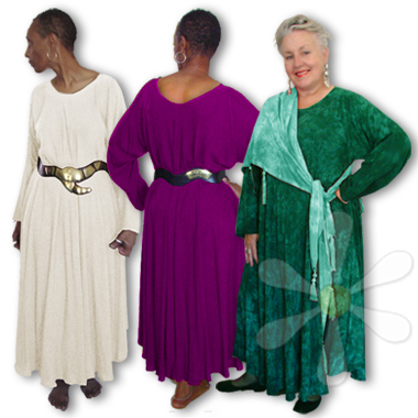 This fabulous free-flowing dress is light and comfortable all year round -- the perfect element around which to create your entire wardrobe! Cut on the bias, it's as deliciously flowing on willowy figures as it is on rubenesque beauties, and its MILES of fabric are deliciously flattering. The wide range of colors and crystal dyes makes ea ...show more This fabulous free-flowing dress is light and comfortable all year round -- the perfect element around which to create your entire wardrobe! Cut on the bias, it's as deliciously flowing on willowy figures as it is on rubenesque beauties, and its MILES of fabric are deliciously flattering. The wide range of colors and crystal dyes makes each one its own unique creation... dream away!