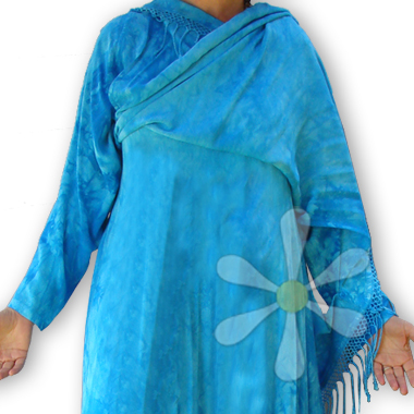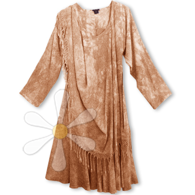 This is the shorter version of our JADIDA Magic Dress with long sleeves, 8" deep side pockets, MILES of flowy fabric, miles of fringe, and fantastic trapunto details... it drapes and flutters like H-E-A-V-E-N on any figure!