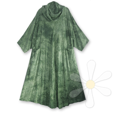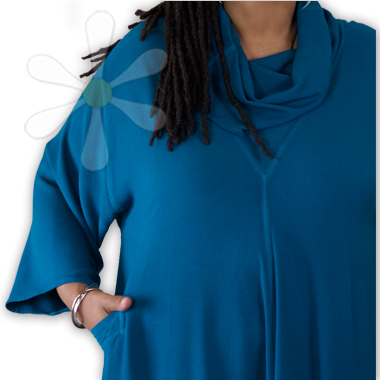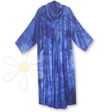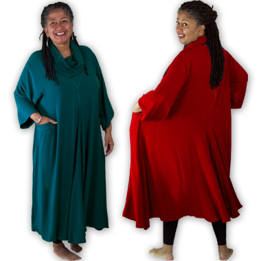 As modest as it is bold, this generous flowy caftan dress will coddle you in MILES of scrumptious sousdi! Roomy on almost any figure, it has a languid draped collar that tops a flattering V-seamed neckline, and inverted V-shaped gussets in the center front (and back) that bring the hemline to a fabulous 200" circumference! The finishing ...show more