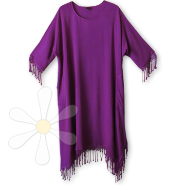 Now this is our kind of t-shirt dress! It's that basic shape but with side pockets and, really, it is all about the hemlines -- sleeves and bottom -- where gorgeous hand-knotted fringe falls luxuriously all the way round. If you're a fan of our very popular FEZZAH TUNIC, this dress is f ...show more Now this is our kind of t-shirt dress! It's that basic shape but with side pockets and, really, it is all about the hemlines -- sleeves and bottom -- where gorgeous hand-knotted fringe falls luxuriously all the way round. If you're a fan of our very popular FEZZAH TUNIC, this dress is for you!