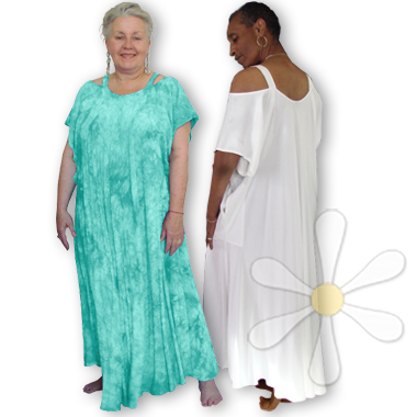 This gorgeous bias-cut goddess dress in deliriously soft sousde has its own secret magic: it's as fabulous on figures tall and willowy as it is on the most curvaceous beauties! This wild yet elegant dress allows a feminine and flirty off-shoulder look that's perfect for even the most well-endowed figures. Cut from yards and yards of what ...show more This gorgeous bias-cut goddess dress in deliriously soft sousde has its own secret magic: it's as fabulous on figures tall and willowy as it is on the most curvaceous beauties! This wild yet elegant dress allows a feminine and flirty off-shoulder look that's perfect for even the most well-endowed figures. Cut from yards and yards of what we like to call the cashmere of cottons, the whole thing drapes and flutters like a windswept dream!