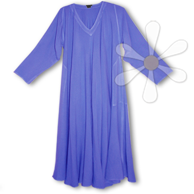 The V-neck version of our wildly popular Tarfaya is in the same luxurious susdi (susti) fabric, soft and comfortable year round -- the perfect base on which to create your ethnic wardrobe! Cut on the bias, it's as deliciously flowing on willowy figures as it is on rubenesque beauties, a ...show more The V-neck version of our wildly popular Tarfaya is in the same luxurious susdi (susti) fabric, soft and comfortable year round -- the perfect base on which to create your ethnic wardrobe! Cut on the bias, it's as deliciously flowing on willowy figures as it is on rubenesque beauties, and its MILES of fabric are deliciously flattering. The wide range of colors and crystal dyes makes each one its own unique creation... dream away! Equally perfect for evening or play, it's our 'everywear' dress because it's perfect EVERYWHERE! Let your inner goddess frolic every day!