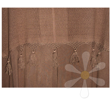 The traditional trapunto topstitching is just one of the many delights of this exquisitely soft jacket! It gathers many ethnic styles, with elements that echo across Eastern Europe and Central Asia as well as the exotic Middle East. The open front features extended lapels covered with trapunto embroidery, which adds a rich textured dimens ...show more The traditional trapunto topstitching is just one of the many delights of this exquisitely soft jacket! It gathers many ethnic styles, with elements that echo across Eastern Europe and Central Asia as well as the exotic Middle East. The open front features extended lapels covered with trapunto embroidery, which adds a rich textured dimension also found on the lower sleeves and across the back, where there is also a row of hand-tied tassels. It's WILD and ELEGANT... and GORGEOUS! Smaller sizes can wrap this at the waist with a wide Moroccan belt or yummy susde scarf to fabulous effect. The unique design will make you feel like you're in an Old World bazaar... the global goddess you are! (We also have a shorter version.)