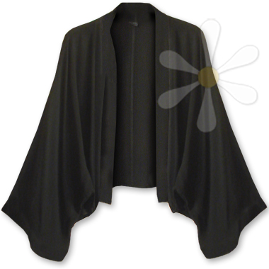 Wide flowing sleeves are the thing with our popular cropped length kimono jacket -- adorable on petite figures, fantastic for layering on more willowy women.