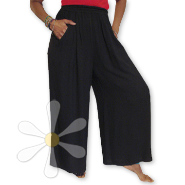 We consider our pants 'pajamas with pockets'! This style is cut wide from top to bottom, so they're roomy and flattering on a wide range of figures. They feature deep front pockets and a wide elastic waist, stitched in three individual rows so they won't pinch. We all have a touch of gypsy wild in us, but sometimes we just want the elegan...show more