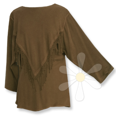 This tunic has s-w-i-n-g! Signature hand-twisted fringe rains down from a deep triangular yoke --front and back -- making the ultimate here-I-am statement. Everyday fun with jeans and your favorite chunky jewels, dressy paired with your comfiest Moroccan pants and spectacular belted with your swingy-est sousde skirt.