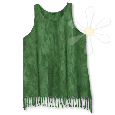 This yummy sleeveless top is all sorts of gypsy wild with its parade of hand-knotted fringe... Can you spell f-a-b-u-l-o-u-s? You can cinch it at the waist with a wide Moroccan belt or contrasting sash or scarf or let it drape dreamily over your favorite pants or ski...show more