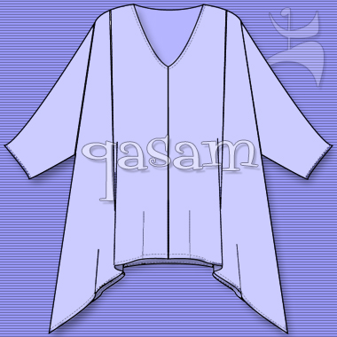 "Qasam" means divided, and this vertically seamed tunic is flattering on zaftig or willowy figures, tall or petite! It features a flattering soft-edged V neckline, but it's the construction that brings all the attention -- long lines that flatter and figure, perfect over skirts or your favorite pants.