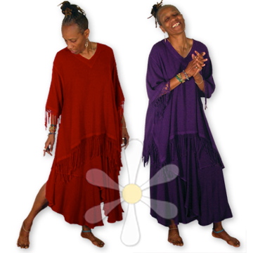 This yummy V-neck tunic is all sorts of gypsy wild! The sides widen out towards the hemline thanks to 9" comfort slits, where gorgeous hand-knotted fringe falls luxuriously all the way round. On the sleeve hems, too! Can you spell f-a-b-u-l-o-u-s? You can cinch it at the waist with a wide Moroccan belt...show more