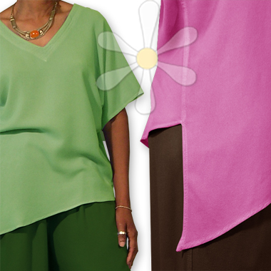 A light and breezy asymmetrical style that's all kinds of gypsy fun! A fantastic V neckline in both the front AND back is unique itself, but the hemline is the star here: one sweeping long diagonal and an opposite one in back.