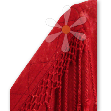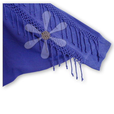 This fringy top is a sensation! it has a rounded neckline, a basic tunic shape, but o! those sleeves! Gorgeous fringe that's twisted and knotted by hand falls from a trapunto-stitched runner from the shoulders to the cuff bands, which are also decorated with trapunto. Can you spell f-a-b-u-l-o-u-s?